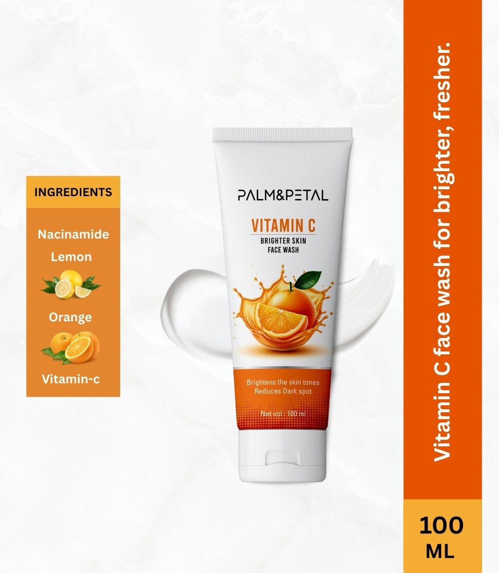 Palm & Petals Vitamin C Face Wash is a brightening daily cleanser that gently removes dirt, oil, and impurities while boosting skin radiance. Enriched with Vitamin C, Orange, Lemon, and Niacinamide, it helps improve dullness, brighten skin tone, and reduce the appearance of dark spots for a fresh, glowing look.