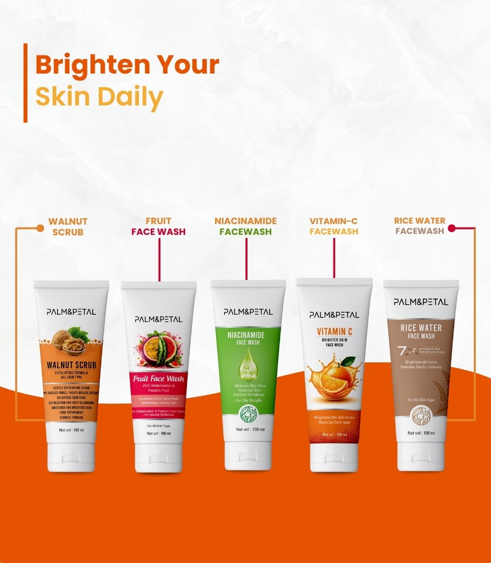 Bring back your natural glow with Palm & Petals Vitamin C Brighter Skin Face Wash, a refreshing cleanser designed to brighten, cleanse, and energize your skin every day. This face wash effectively removes daily impurities, excess oil, and pollution buildup while keeping the skin feeling clean and comfortable.